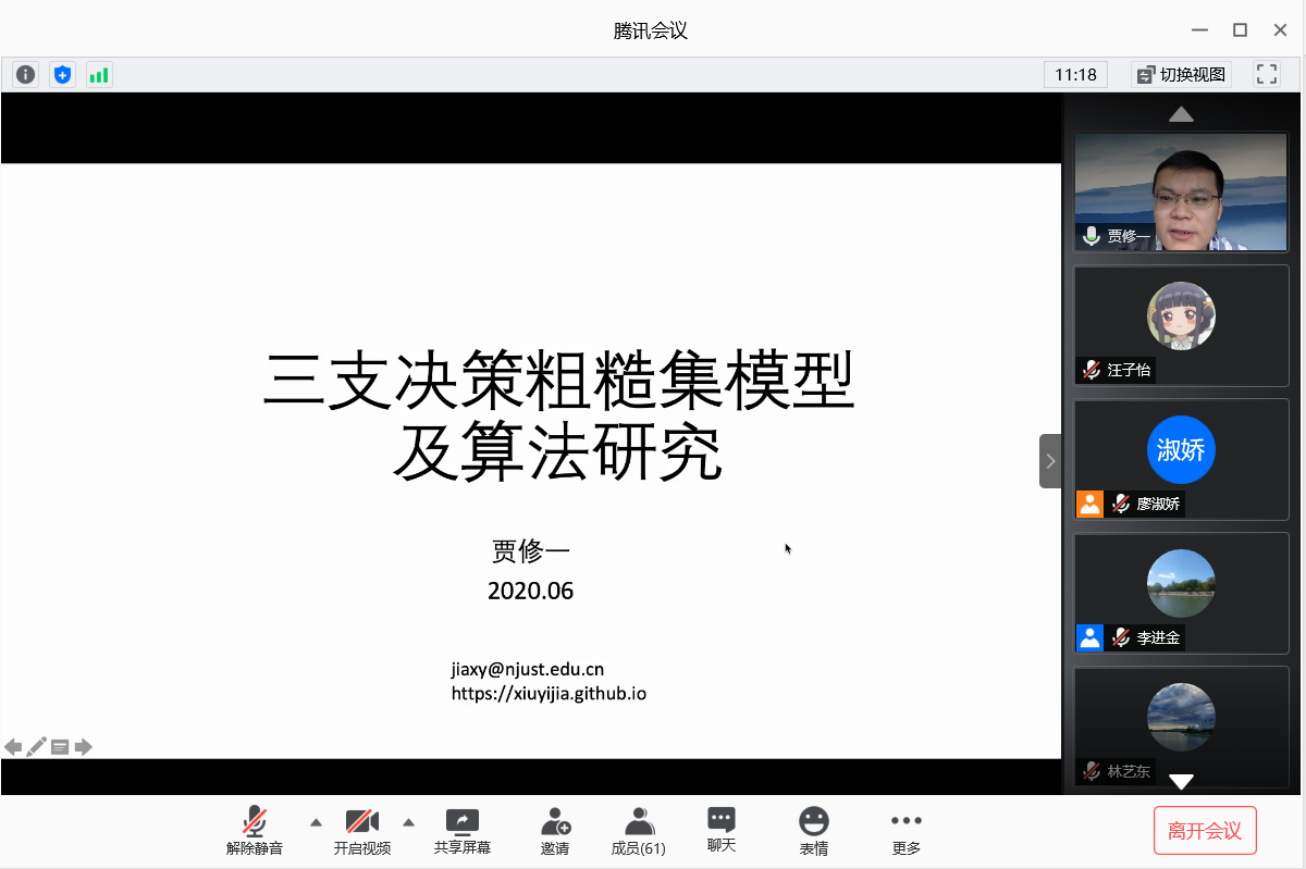 应我院邀请,6月20日上午,yl23455永利贾修一教授在腾讯会议作了《三支决策粗糙集模型和算法研究》的报告。相关师生聆听了此次报告,报告由廖淑娇副教授主持。
