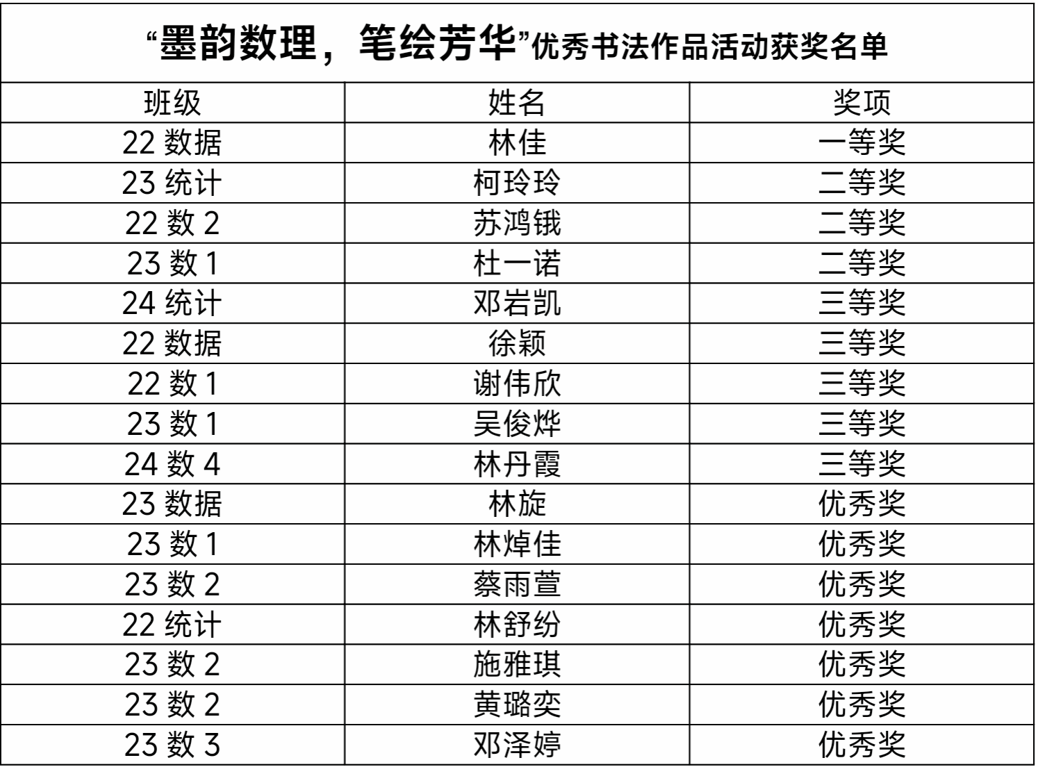 近日,闽南师范大学yl23455永利开展“墨韵数理,笔绘芳华”书法作品征集活动,本次活动得到了同学们的积极响应,收到来自21级-24级同学们众多风格各异、精彩纷呈的书法作品。