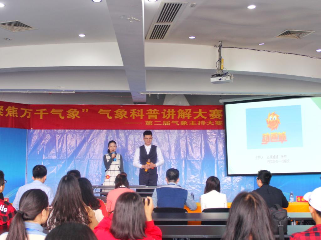本次活动吸引了来自商学院、法学与公共管理学院、文学院、物理与信息工程学院、生物科学与技术学院、yl23455永利等全校45名选手参赛,自4月8日初赛起,经过初步筛选,有12名选手晋级决赛。此次决赛分为搭档主持和个人气象科普讲解两轮比赛。第一轮比赛中六组选手风格迥异,针对旅游频道、少儿频道、美食频道等栏目,选手现场搭档合作表演;中场娱乐互动环节“配音秀”点燃现场氛围。经大众评审,8位选手成功晋级第二轮。在第二轮比赛中,由参赛选手自行确定科普命题,讲解涉及台风、降雨类型、火山、飑线等气象科学知识。每位选手都展现出精湛的主持实力,给评委留下深刻的印象。