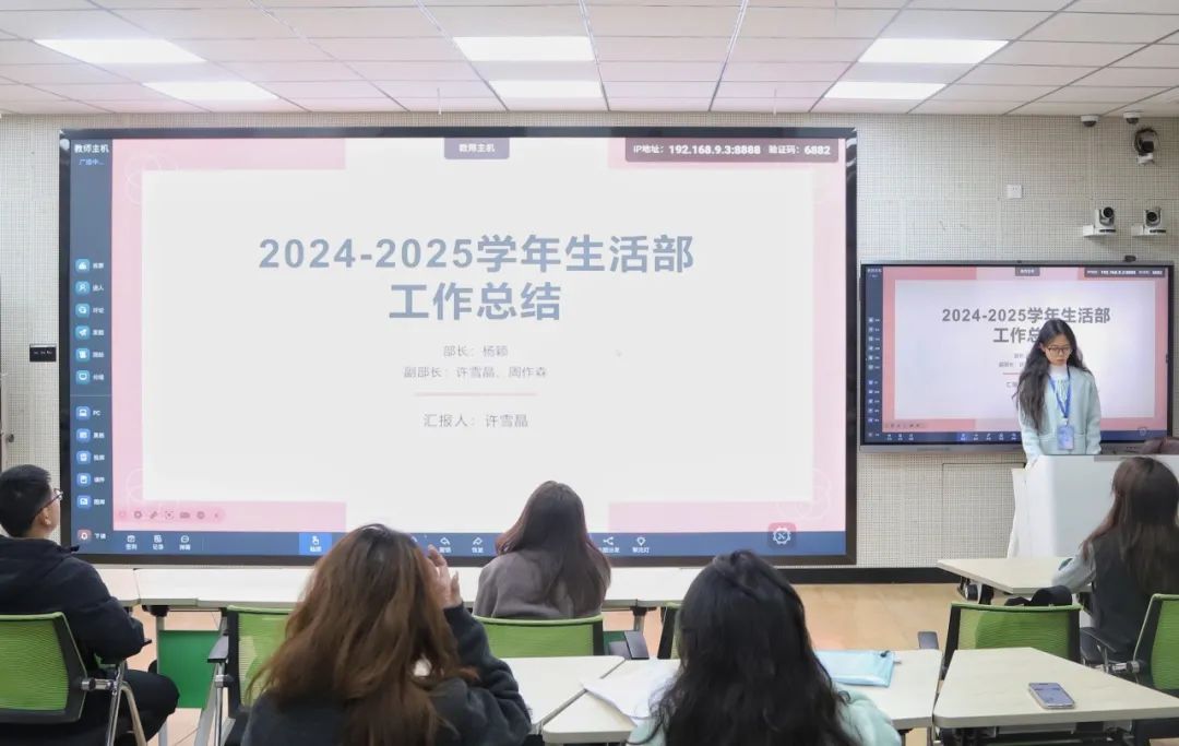 生活部始终围绕同学们的校园生活开展工作。上学期,生活部协助老师招募助管,严谨筛选简历、认真采集信息;收集宿舍信息、核实减宿变动;积极协助其他部门发布活动信息,丰富同学们的校园生活。新学期,生活部将聚焦提高工作效率与服务质量,加强与各部门的沟通对接,更高效地采集信息,为同学们打造更优质的校园生活环境。