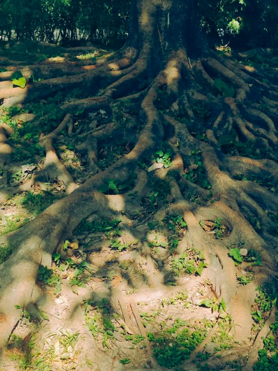 树叶四季各异,树根盘根错节,静默着,十年如一日的扎根于大地。