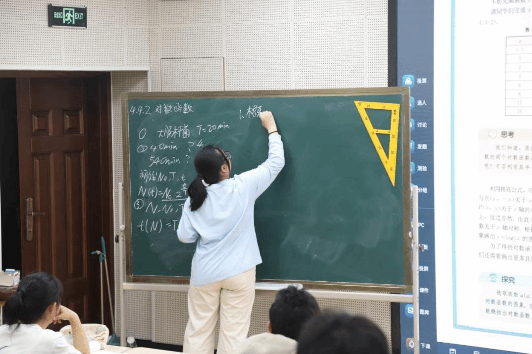 尤其在学生进行“对数函数的图象和性质”教学展示结束后,程宏老师组织听课同学作为同行对展示同学的教学进行互评,并随时补充教师的点评,在这个师生共同评价的过程中自然的引出了做好教学设计及实施的核心:以“四有”好老师和教育家精神作为价值引领,提升对教育教学的深刻理解,才能提升教学设计的层次和高度,才能在教学实施的过程中更好地“敬畏生命”,做到“以学生为中心”。程宏老师将课程思政象春雨一般,润物细无声地浸润在听课的学生和老师们心中。
