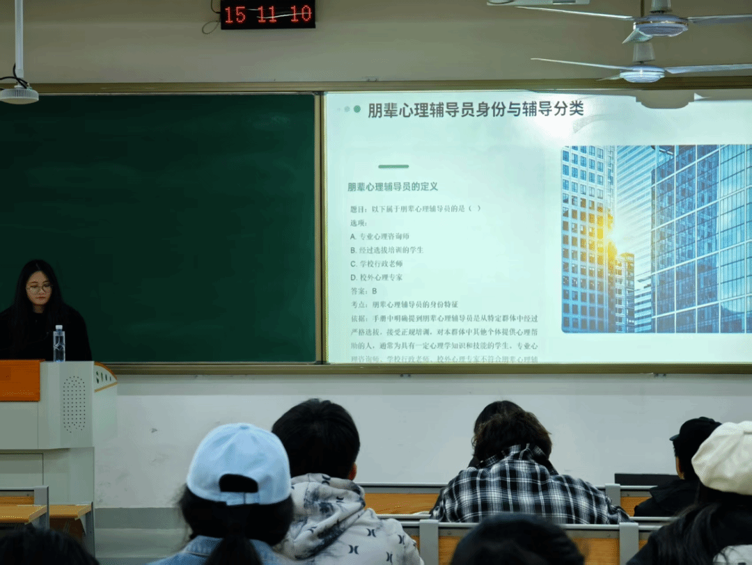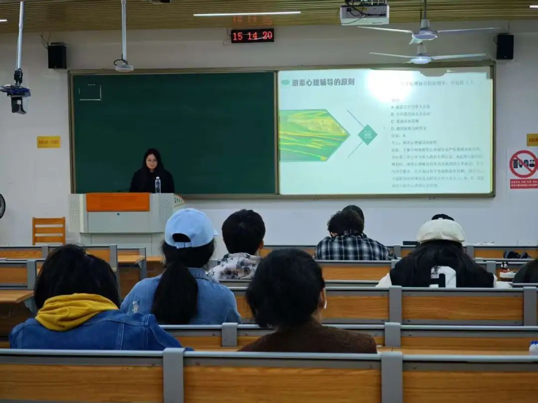 心理助管学姐凭借丰富经验与专业知识开展心理健康知识宣传普及讲座,从情绪产生的心理学机制,到压力管理的科学方法,学姐将专业理论融入校园生活案例,让抽象知识变得生动易懂,学员们认真聆听、积极提问,互动中提升理论素养,掌握实用心理调适技巧,为朋辈心理辅导工作筑牢根基。