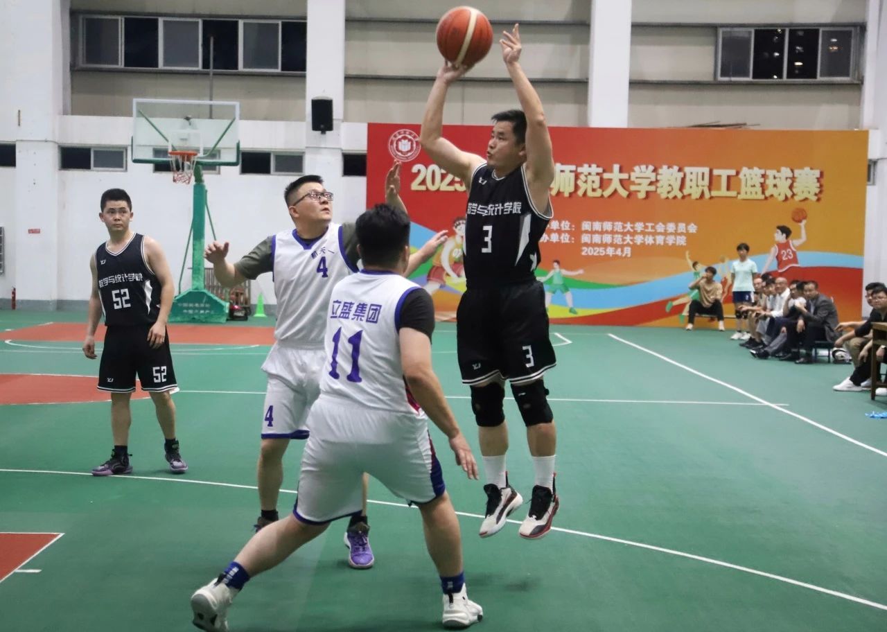 4月27日晚,闽南师范大学教职工篮球赛决赛在红馆举行,经过多轮比赛较量比拼,数统教职工篮球队与机关一队争夺探花之决。我院师生到场为教职工篮球队加油呐喊。