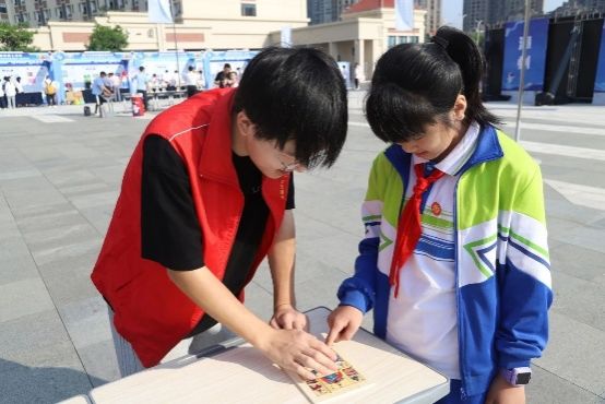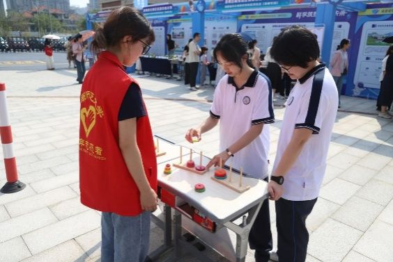 yl23455永利益智教具服务队以“魔尺探秘”“华容道博弈”“二阶魔方解构”“马蹄锁破译”“汉诺塔智斗”等系列数学益智教具挑战为载体,为现场师生与受邀嘉宾打造了一场别开生面的认知探险之旅。服务队成员以匠心精神构筑思维互动场域,通过默契协作构建起立体化指导体系:以专业素养拆解益智教具的逻辑密码,通过一对一实操指导与分步骤示范教学相结合的方式,为参与者搭建从观察到实践的认知阶梯。在每项教具的体验场景中,志愿者们化身引路人,既保持适度引导以维持挑战趣味,又及时提供关键点拨确保探索深度,使每位体验者在破解谜题的过程中实现思维跃迁,收获知行合一的沉浸式学习体验。