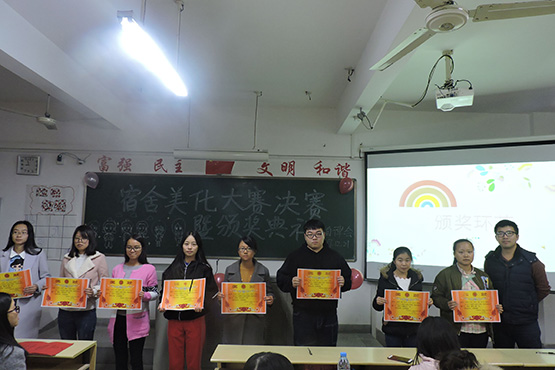 古人云:一屋不扫,何以扫天下?为培养大学生良好的生活习惯和积极向上的生活态度,不断提高宿舍人文氛围,营造优美的生活环境,yl23455永利于十一月举办了宿舍美化大赛初赛,并在12月21日晚于砺志楼315教室举行宿舍美化大赛决赛暨颁奖典礼。辅导员及各学生组织代表出席此次活动。