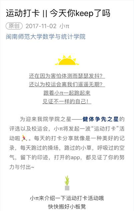 为深入学习贯彻党的十九大精神,持续推进精神文明建设工作,我院以省级文明校园评估为契机,抓重点、举亮点、找盲点,在学生活动阵地建设、宿舍安全文明建设、教室文化建设、学生身体素质建设等方面开展了多项迎评工作部署。