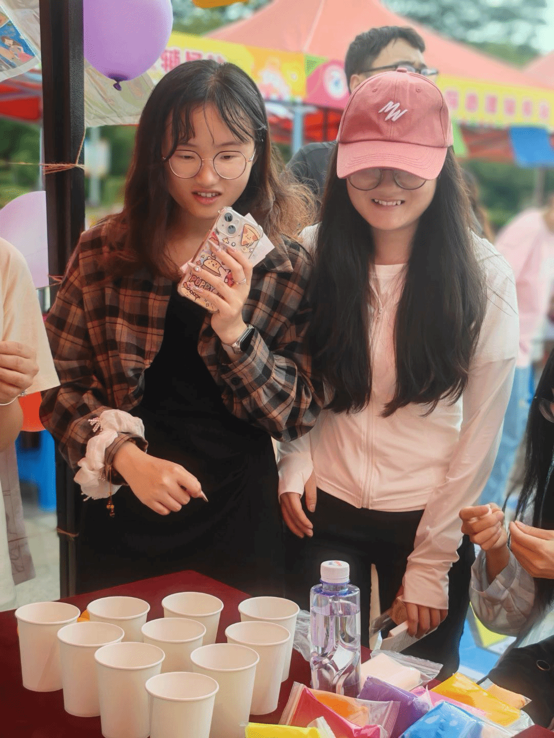 阶梯式纸杯阵前,同学们屏息弹射小球。当小球成功入杯,对应的心理健康小贴士或趣味测试题随即揭晓:“焦虑时如何快速调节情绪?”“你的隐藏人格是什么?”游戏化的问答形式,让心理健康知识在欢声笑语中悄然传递,助力心灵之花在逐梦路上绚丽绽放。