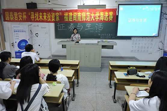 为推动我校青年学生金融理财实践活动的开展,搭建金融界产学研交流合作平台,充分调动学生参加第一届国泰君安杯“寻找未来投资家” 福建闽南师范大学海选赛的积极性,yl23455永利于4月24日晚,在砺志楼225顺利开展国泰君安杯“寻找未来投资家”海选赛动员会。此次大赛由数统院职规中心承办,出席本次会议的嘉宾有国泰君安证券漳州营业部代表蒋凤蕾、林少伟。