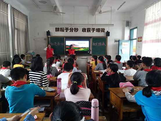本次班会的主题为“红色基因,我们传承”,皆在培养同学们的爱国情怀,引导学生学习革命先烈的勇敢、大无畏精神,培养学生的感恩意识,树立回报社会的责任意识。班会伊始,志愿者们首先讲述了一些革命烈士的英雄事迹,为了让小朋友们更深刻的了解革命英雄,班会期间还穿插了革命先烈的相关视频播放和一些问答互动,通过提问等形式引发学生的思考。现场同学们争先恐后的回答问题,场面十分活跃。除此之外,志愿者们还普及了清明节的由来等知识,传承红色基因,发扬革命精神。班会最后,每位小朋友都用便利贴写了对自己敬仰的革命英雄想说的话,真情满满。“那些视频都好感动,我看了好想哭,他们真的好伟大。”一位小朋友告诉志愿者。