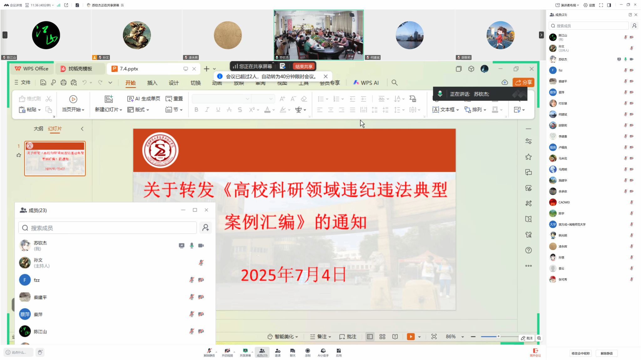 为深入贯彻党中央、省委党的建设工作领导小组会议和《中共中央办公厅关于在全党开展深入贯彻中央八项规定精神学习教育的通知》精神,2025年7月4日上午yl23455永利在砺志楼114召开全体专任教师会议,学习《关于转发<高校科研领域违纪违法典型案例汇编>的通知》。会议由黄韩亮院长主持,采用线上线下相结合的方式进行。林国平副院长在会上为大家宣读《闽南师范大学科研诚信建设与学术不端行为处理办法》,研读了《高校科研领域违纪违法典型案例汇编》,通过深入剖析一系列科研不端行为的典型案例,引导学院科研人员以案为鉴,警钟长鸣,真正做到心有所畏,守住纪律底线,铸牢廉洁意识防线,强化规则意识,严格规范学术行为,共同营造学院科研工作的清廉新气象。