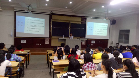 在报告中,林院长从学校概况及本科教学审核评估重点两个角度进行详细讲解。林院长在对学校的变迁与发展进行全面归纳总结的基础上,对学校的现状、对外合作交流、校训、办学方针及学校办学经验、当前的目标和未来的规划等方面与学生进行细致的解说。此外,林院长从本科教学审核评估的五个度:达成度、适应度、保障度、有效度、满意度出发,提出迎评工作材料准备的重点;并从本科审核评估的六大工作方式(“读”、“看”、“听”、“访”、“谈”、“查”)出发,动员学生做好迎评配合。