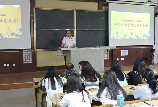 为响应国家在扶贫扶智方面的精神和决议,闽南师范大学在教师队伍建设、学生资助体系、学生培养计划当中,坚持以人为本,注重对师范学生的科学培养方案,服务于地方基础教育。我院在教育服务当中,通过学校平台,丰富创新教育实践,加强教育实践指导,于10月20日在砺志楼120开展2016-2017学年师范生教育实践动员大会。本次大会由我院副院长黄韩亮副教授主持,与会的有周仕荣教授、党委副书记陈晶莹老师、团委副书记陈明老师及14级数本班全体同学。