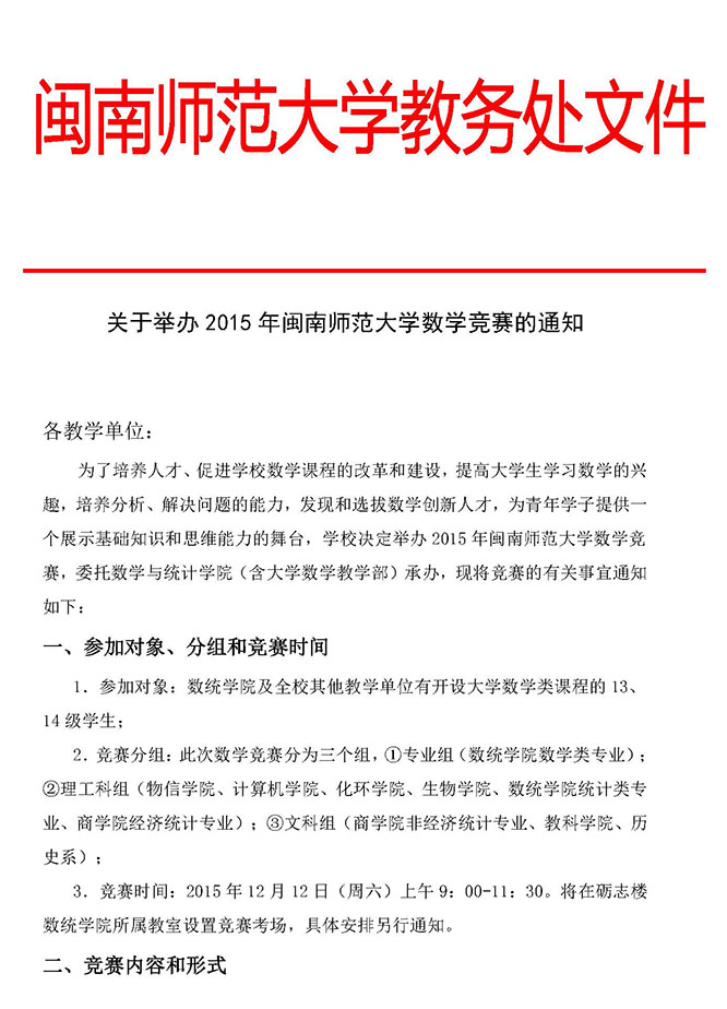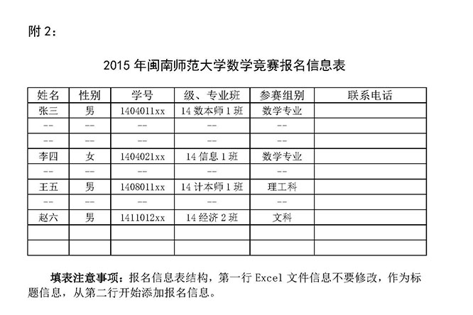 附件2:2015年闽南师范大学数学竞赛报名信息表.xls