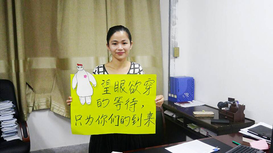 9月13日是全校新生报到的日子,yl23455永利提前一周即开始策划给2015级的同学们不一样的见面礼。学院的专任老师、辅导员、优秀校友以及在校的学长学姐们,将欢迎和祝福的话写在题板上,在砺志楼的各个地方展现。这些展示都被拍成短片,在报到当天通过微信公众号,推送给每一个新生。