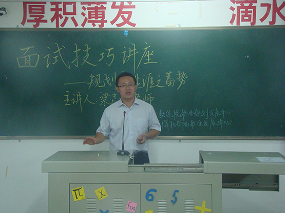 简历制作方面,梁老师强调要言简意赅、职位明确、突出优势。面试方面,他详细介绍面试准备规则、面试礼仪及细节,强调面试前应先了解应聘公司的经营状况及制度。最后,他结合近几年我校大学生毕业就业去向简要介绍企业、公务员、留校、考研及创业五方面就业准备所需要注意的事项,提出在校大学生应尽早确定自己的就业方向,寻找可利用资源,做到厚积薄发。