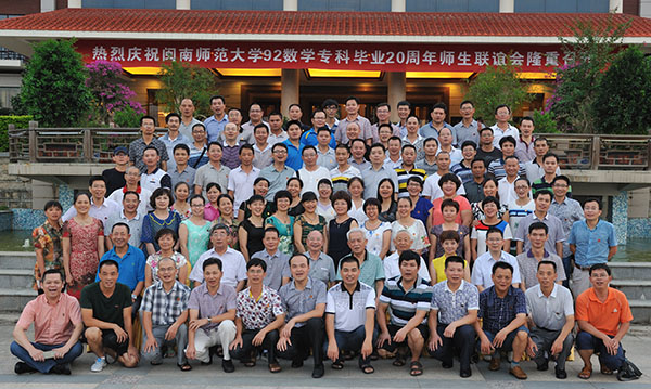 8月16日,我院 92级数学专科学生和老师一百多人齐聚长泰连氏大酒店,举行毕业20周年师生联谊会,校长助理林静华(原数学系副书记)、院长李克典、党总支书记徐志怀(原辅导员)、实习支教中心主任黄晓农,校友办副主任刘勤,计算机科学学院副院长陈宝兴,原数学系主任王桂芳, 原数学系党总支书记何清土,原成教院院长林斐等十五位领导和老师应邀出席。
