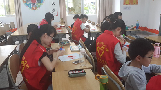 5月11日母亲节当天,yl23455永利青年志愿者中心在砺志楼与参加义务家教活动的学生一起制作母亲节礼物——康乃馨,并亲手将礼物送给自己的妈妈。