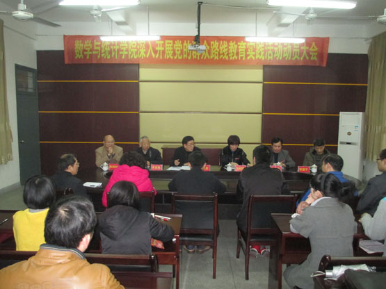 3月11日下午,李进金校长前往定点挂钩单位数统学院参加党的群众路线教育实践活动动员会。校国资处处长、活动督导员洪丽瑄、数统学院领导班子、教师党员、非党员和民主党派教师代表、学生党员代表等参加了会议,会议由李克典院长主持。