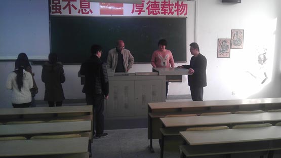 陈副院长一行逐间教室、实验室进行检查,查看了场所卫生、多媒体设备、课桌椅、门窗等各种设施是否完备。本学期始,学校在所有教室全部安装了多媒体设备,因此,陈副院长一行重点查看了多媒体设备,对每间教室的设备都开启检查能否正常使用。经检查,各间教室的多媒体设备总体上都能正常使用,但也存在着如部分投影图像不正、部分设备柜不能正常开闭、缺少窗帘等情况。检查结果显示,各间教室、实验室的各种设施基本完备。针对存在的一些问题及时登记汇总,能马上处理的及时解决,有困难的限时处理或与学校有关职能部门沟通协调解决,确保新学期教学秩序的良好运行。