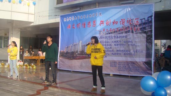 12月7日上午,由yl23455永利自律会主办的第九届社区文化节开幕式在达理活动中心举行,参加开幕式的有学院团委副书记陈明老师、10级辅导员郑建平老师、13级辅导员方婷老师、学院各组织代表、各院系自律会代表以及13级新生。