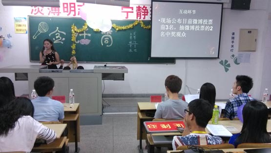 10月25日晚上,yl23455永利在砺志楼举行第五届“金话筒”主持人大赛,经过个性风采展、风格主持、即兴主持、看图说话和巅峰对决等五个环节,最后2013级的高欣获得第一名。