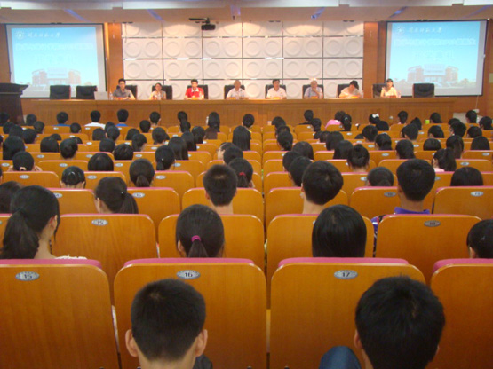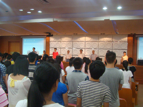 9月10日下午3点20分,yl23455永利2013级新生开学典礼在逸夫图书馆五楼会议厅隆重举行。开学典礼由团委副书记陈明老师主持,出席开学典礼的有yl23455永利院长李克典教授、院党总支书记徐志怀教授、蔡建平副院长和陈跃辉副院长、院党总支秘书林晓老师、教学秘书林伟华老师、科研秘书兼研究生辅导员李气芳老师、13级本科生辅导员方婷老师以及全体13级本科生、研究生。