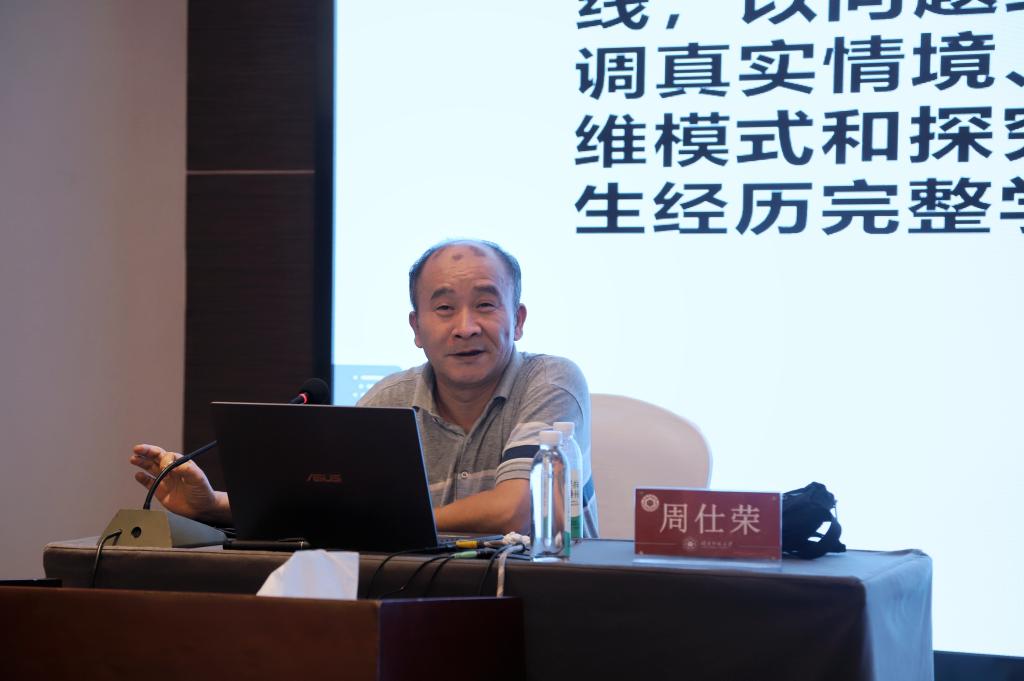 周仕荣教授以《谈谈数学大单元整体教学》为主题开展讲座。周老师阐述了大单元教学的概念,介绍了其演变过程,并从三个维度上论述了大单元教学的特征,具体阐释了做单元整体数学教学设计的方法。
