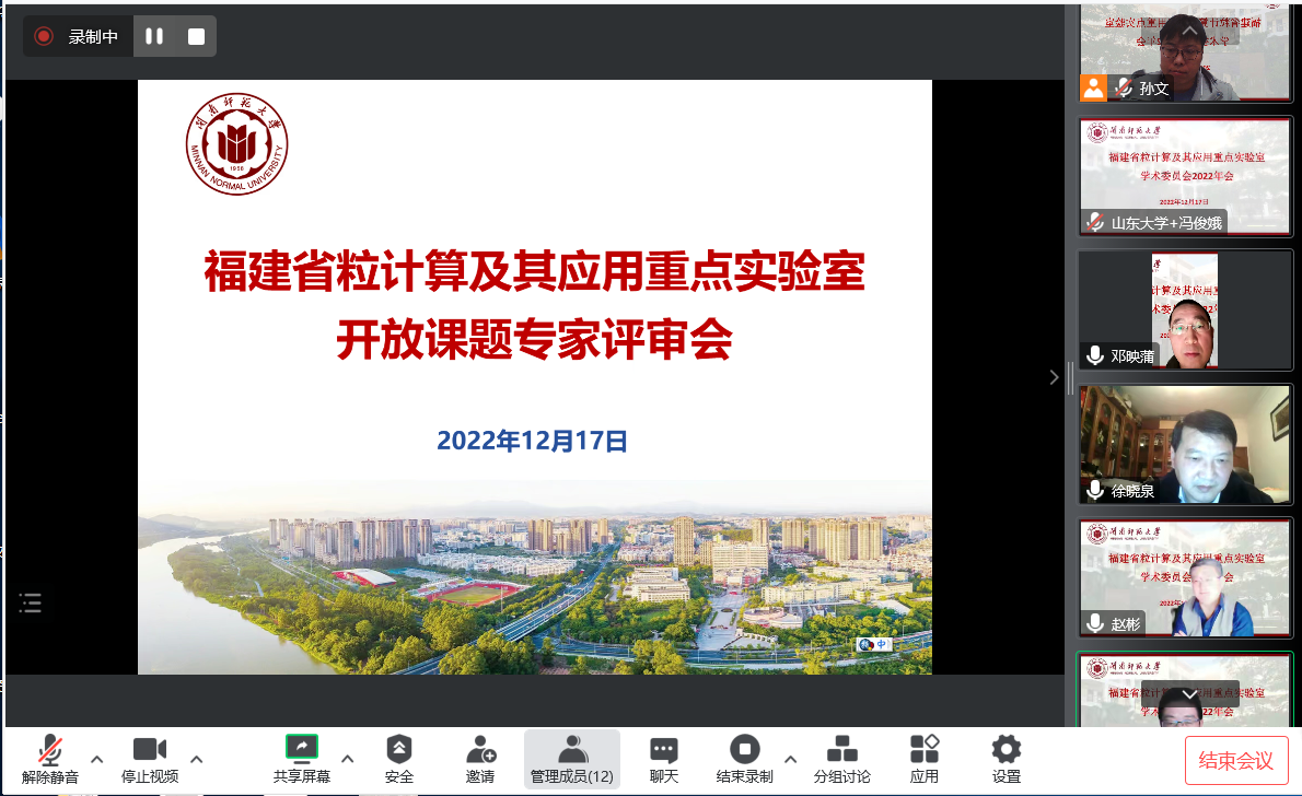 12月17日,福建省粒计算及其应用重点实验室学术委员会2022年会在腾讯会议线上召开。粒计算实验室第三届学术委员会各位专家参加会议,会议由学术委员会主任赵彬教授主持。