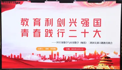 为深入学习贯彻党的二十大精神,2023年12月17日,yl23455永利2022级数学与应用数学(师范)2班团支部开展“强国复兴,青春践行”教育强国主题团日活动。校团委书记、学生处处长蔡斌,校团委副书记童娟,数统学院党委副书记胡海智,数统学院团委副书记郑珊,22级辅导员石伟琦参加了本次主题团日活动。