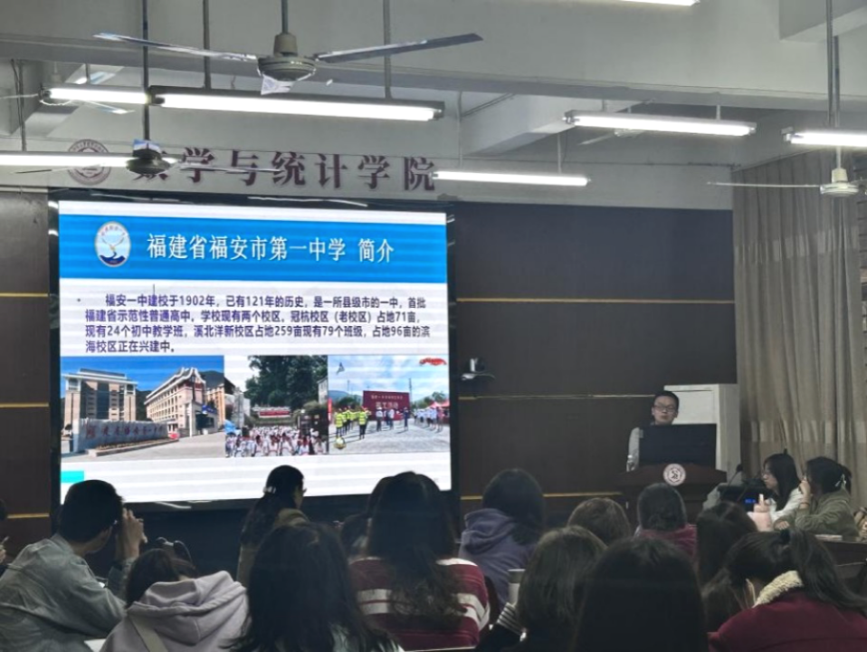 李铮老师首先向同学们详细介绍了福安一中的办学情况、教学特色,还向同学们分享了他在17年教学生涯中的心路历程,比如如何高质量地准备一堂公开课。