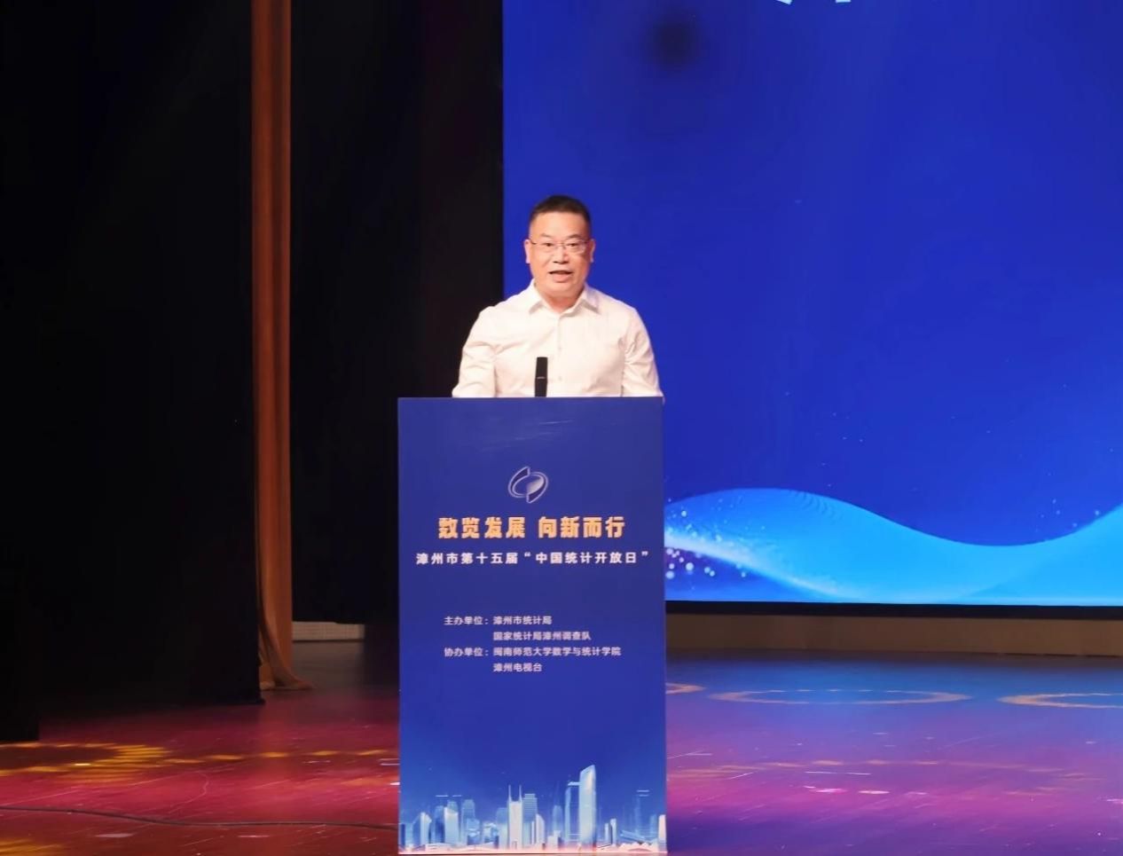 随后,林同池局长在致辞中指出,本届统计开放日恰逢中华人民共和国成立75周年之际,漳州统计调查事业始终与党和国家同呼吸、共命运。他回顾了漳州统计调查人75年来的奋斗历程,并展望了未来的发展方向。他表示,漳州统计调查人将认真学习贯彻落实党的二十届三中全会精神,不忘初心、牢记使命,充分发挥统计的三大职能,助力漳州建设现代化滨海城市、打造全省高质量发展新的重要增长极。