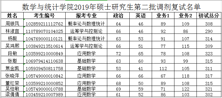 复试名单公示如下: