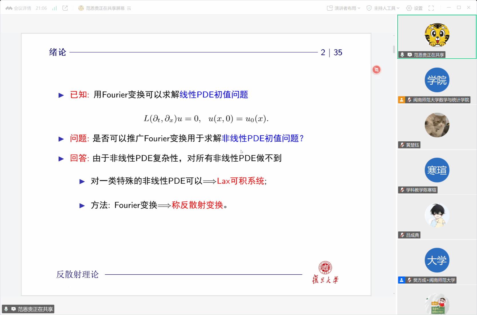 应我院邀请,4月23日下午,复旦大学范恩贵教授在腾讯会议中作了题为《反散射理论的发展和应用》的讲座。相关师生聆听了此次讲座,该讲座由樊方成老师主持。