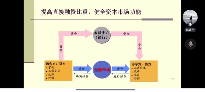 应我院邀请,5月8日,厦门国家会计学院邓建平教授通过腾讯会议作了题为《金融与高质量发展》的报告。统计学专业部分教师、21和22统计学专业本科生聆听了此次报告,报告由林国平副院长主持。