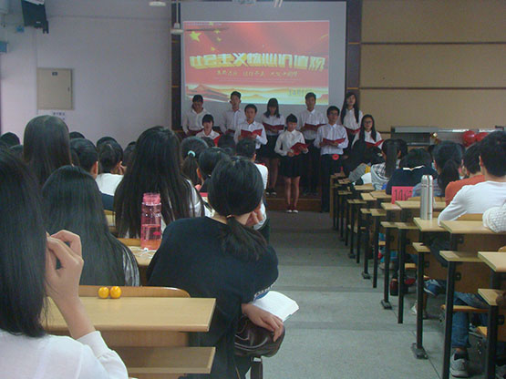开幕式在观摩历届党团活动的风采展中正式启动,随后14级各班团支部通过各具特色ppt和视频展示生动全面展示了他们在近两个月期间亲身学习和践行社会主义核心价值观的概况,同时他们还通过现场朗诵、小品、合唱、宣誓、签名等生动的形式诠释他们眼中的社会主义核心价值观,以平民化和大众化的视角,通俗易懂的语言把社会主义核心价值观24个字内涵解读得入脑入心,在场同学产生了思想共鸣,赢得了他们阵阵掌声。