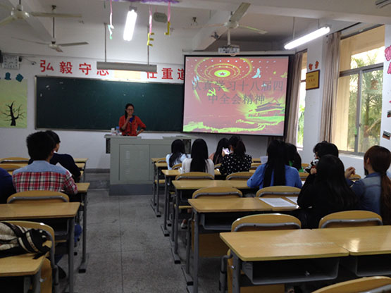 为了全方位组织学生党员及入党积极分子深入学习党的十八届四中全会精神,从10月28日起,yl23455永利学生党建中心积极策划,通过“线上、线下”两条渠道多种载体广泛组织学生党员及入党积极分子开展学习讨论活动,营造了良好的理论学习氛围。通过“数统学院学生党建中心”微博平台及时转载《中共中央关于全面推进依法治国重大问题的决定》,借助网络平台开展了激烈的微博互动讨论。11月2日,学院分党校借助培训的有利时机,及时组织第七期全体学员以小组为单位广泛开展学习党的十八届四中全会精神活动,各组通过PPT展示、报告、辩论、心得体会交流等形式深入学习了十八届四中全会精神,加深了对依法治国的进一步理解。同时,还组织下班党员、下宿舍党员以班级和宿舍党章理论学习小组为阵地,带领学生掀起学习党的十八届四中全会精神的热潮,引导学生紧跟时事,把自己的人生梦与构建中国特色社会主义法治社会紧密结合起来。