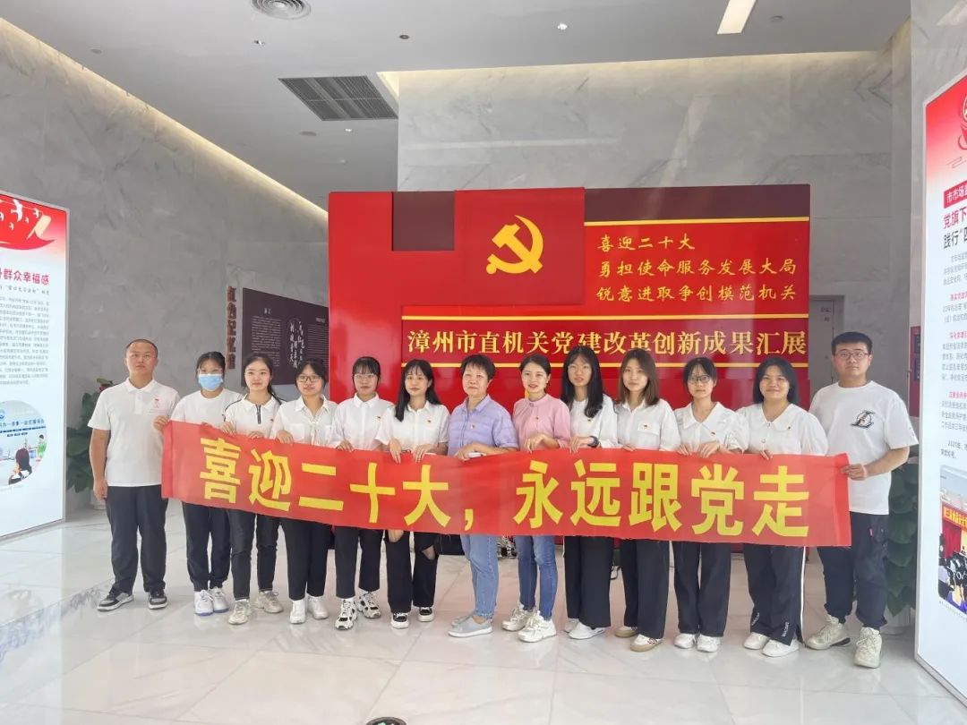 为迎接党的二十大胜利召开,切实提升党员党性修养,10月13日下午,我院学生第三党支部全体党员赴漳州市城市展示馆开展“喜迎二十大,永远跟党走”主题党日活动,校财务处处长陈茜老师作为联系支部机关单位领导参加支部活动。