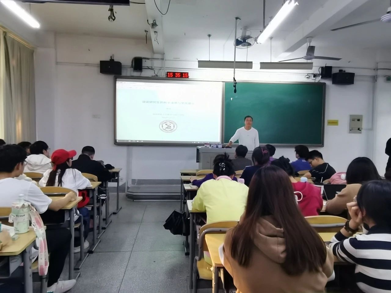 为强化研究生学术道德意识,营造优良学风,yl23455永利于12月5日下午开设了一场面向2024级研究生的科学道德和学风建设课程。此次课程由我院教工第一党支部书记,闽江学者特聘教授曹炜老师主讲,为同学们的论文写作提供了专业指导。
