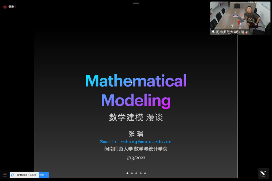 首先,张瑞老师对同学们提出了学习数学的建议,帮助同学们筑牢根本。其次,张瑞老师为同学们讲述了数学建模的由来与发展。最后,张老师为同学们展示了建立数学模型的基本过程,勉励同学们以数学之眼看世界,体会大道至简。
