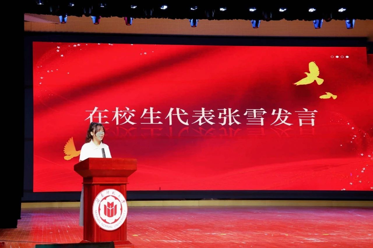 2023级研究生张雪作为在校生发言,她首先为2024级的学弟学妹们的到来表示热烈欢迎,接着以自身经历为例,向学弟学妹们分享了感受:大学作为人生崭新的阶段,应该以态度先行,认真拼搏;行动至上,迎接坎坷;团结包容,团队至上的态度度过大学生活。传承博学、明理、砺志、笃行的校训,为自己的未来打好基础,最后希望大家为自己的梦想奋斗。
