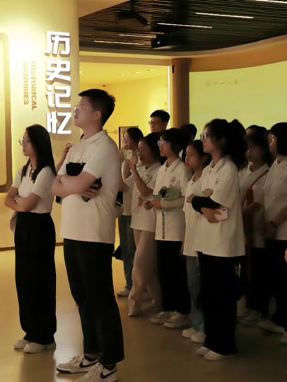 实践队员们跟随着解说员重温了七匹狼品牌的发展腾飞之路。从创业最初的小布行,到中国服装行业的领先品牌,周氏兄弟始终秉持着“积博厚德,成悠远业;诚朴勤毅,持经达变”的家风家训,一路乘风破浪,探索出以 “真、野、刚、燃、智、变、谋”为内核的精神,铸就中国男装市场的“狼王”传说。