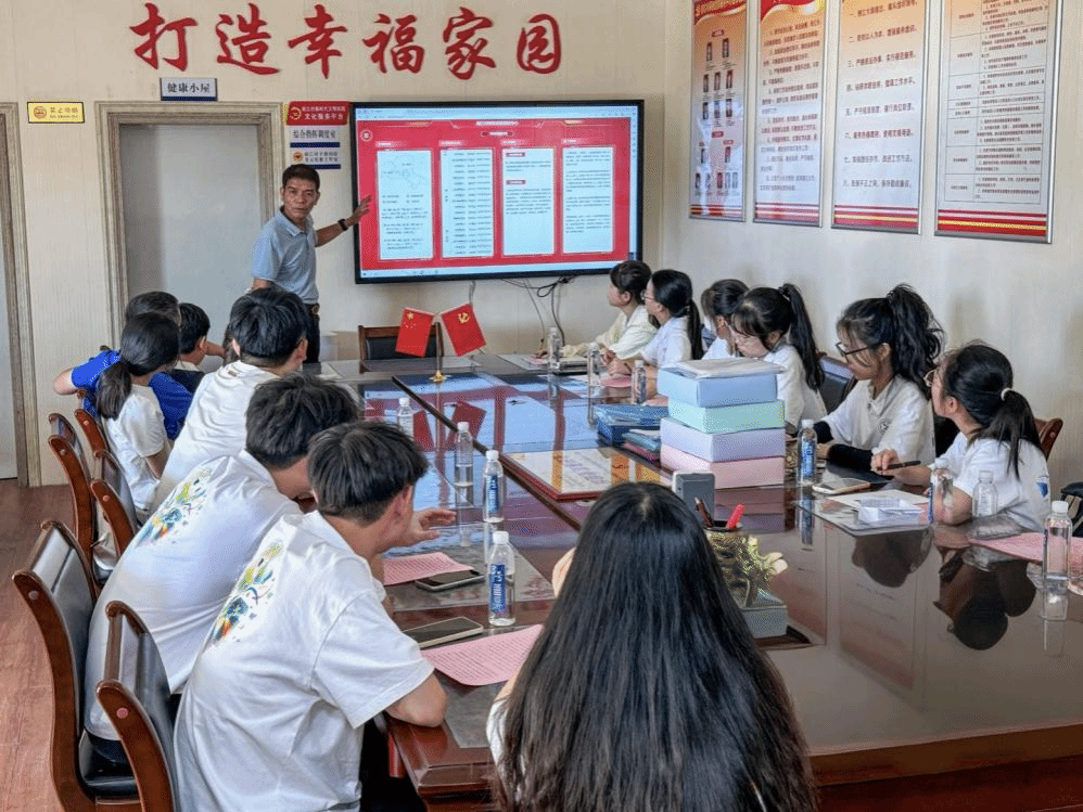 为初步了解南江村的基本情况,实地走访前,实践团与南江村党支部书记、村委会主任李镜波在南江村党建服务中心开展座谈会。会上,李书记向实践团介绍了南江村党建+邻里中心综合服务云平台。该平台以“基层治理数字化平台”作为底座,深耕网格“微力量”,激活治理“大效能”,运用“千里眼+和家亲”对南江村开展综合安防布局,全角度监控村景村貌,同时设置各级网络员,不断推进乡村数治化,发挥村级网格优势,将建档立卡、思想政治教育、困难帮扶援助、就业创业扶持及权益维护等多项工作置于一线统筹开展,绘就“智”理图。