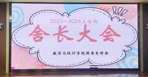 为进一步加强yl23455永利学生宿舍管理,落实落细宿舍安全相关工作,明确宿舍长的工作职责和要求,营造和谐温馨、积极向上的宿舍氛围,创建文明卫生、干净整洁的宿舍环境,11月4日,数统学院自律会在砺志楼120召开“2023-2024学年舍长大会暨星级宿舍、学风宿舍颁奖典礼”,学院党委副书记胡海智、团委副书记郑珊及22级辅导员、院自律会指导老师石伟琦出席本次大会,学院各年级舍长参加了本次大会。