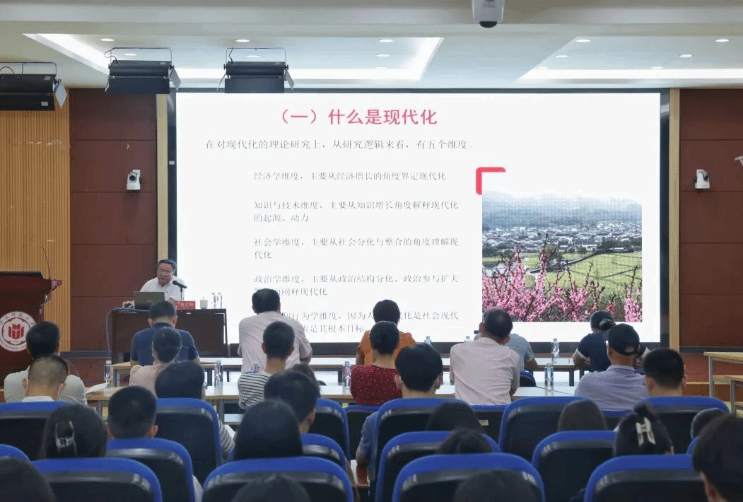 为深入学习贯彻习近平新时代中国特色社会主义思想主题教育,全面贯彻落实党的二十大精神,切实提升师生党员的理论素养,发挥党员先锋模范作用。6月18日晚上,我院分党校于砺志楼120报告厅举办第三期正式党员培训班第二次集体学习活动。本次学习由教育科学学院党委书记郑文海教授讲授以《正确理解和大力推进中国式现代化》为题的党课。院全体师生党员参加,活动由院党委书记陈晶莹主持。