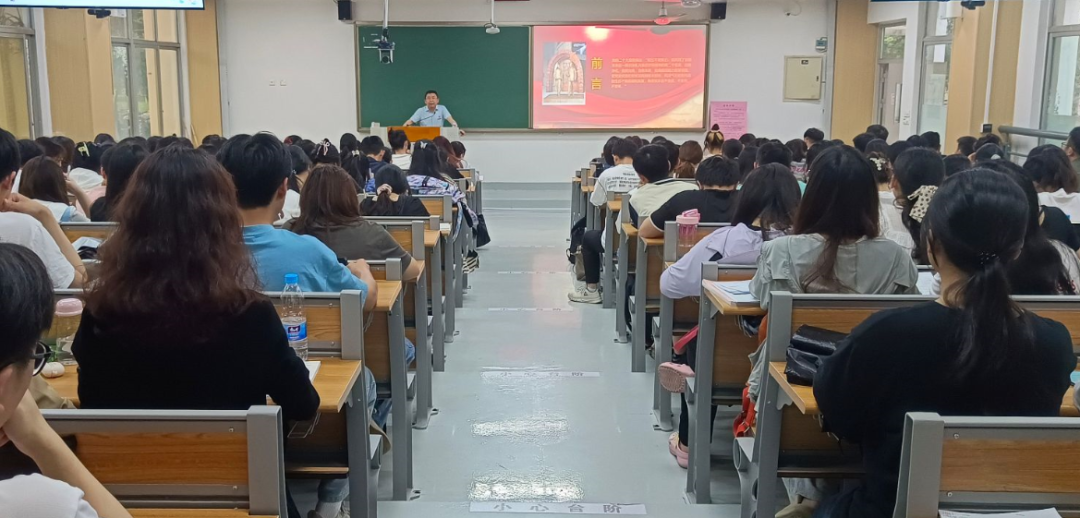 课上,胡海智从党的自我革命的内涵和意义、党的自我革命的依据、党的自我革命面临的挑战、纵深推进新时代党的自我革命的路径四个方面进行阐述。中国共产党是用马克思主义武装起来的政党,始终把为中国人民谋幸福、为中华民族谋复兴作为自己的初心和使命,并一以贯之体现到党的全部奋斗之中。习近平总书记在党的二十大报告中指出:“党的自我革命永远在路上”。他向广大青年学子提出倡导,要加强思想建设,坚定理想信念,端正入党动机,培养理论与实践相结合的能力,牢记初心使命,不负党和人民寄予的殷切厚望。